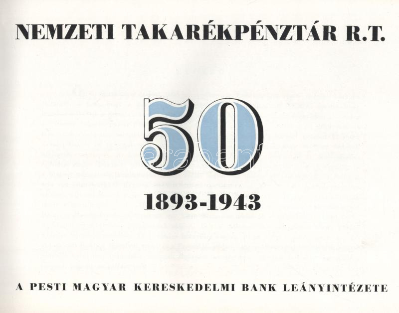 Lestyán Sándor: Az 50 éves Nemzeti Takarékpénztár 1893-1943. Bp., 1943. Pesti Magyar Kereskedelmi Bank Leányintézete. Kiadói papírkötésben