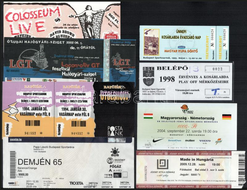 Vegyes belépőjegyek, össz. 12 db, közte LGT fesztivál (2002) és búcsúkoncert (1992), Demjén 65, Rapülők koncertjegyek, kosárlabda meccsek, stb.