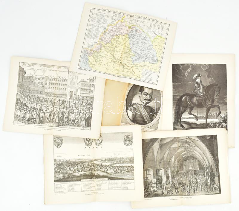 cca 1900 A Nagy Képes Világtörténet VIII. kötetének mellékletei, össz. 6 db (5 kép + 1 térkép), 23,5x15,5 cm és 31x24 cm körüli méretben