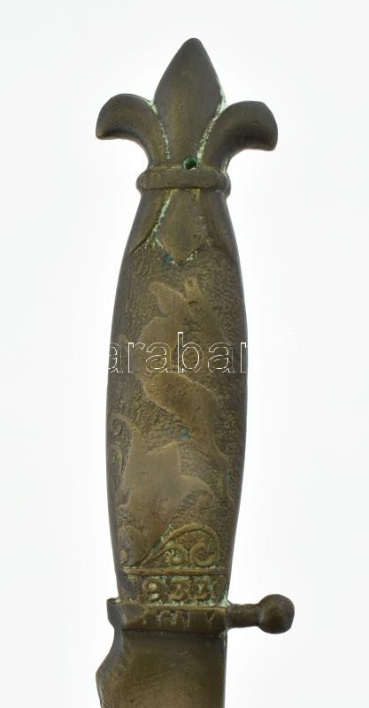 1933 Cserkész Jamboree bronz levélbontó, jelzett, h: 22 cm