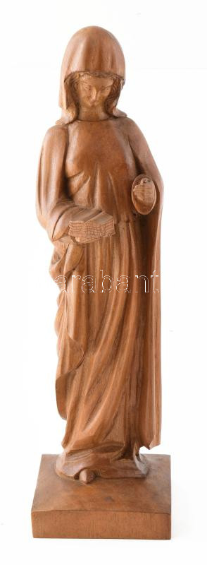 Antik fából faragott apáca szobor, szerzetesi munka, jelzett, Cluny-i apátság. Szép állapotban. m: 35 cm