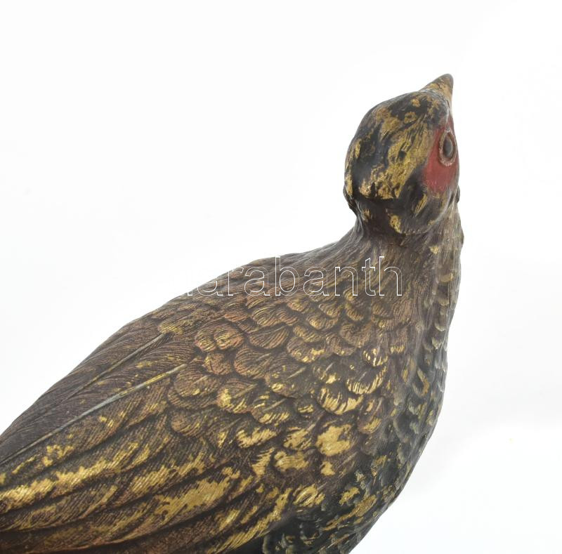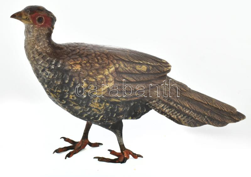 Bécsi bronz szobor, Franz Xaver Bergmann, fácán, hidegen festett, jelzett, sorszámozott, egyik lába sérült, korának megfelelő kopásokkal, h: 16 cm, m. 12 cm / Wiener Bronze, Franz Xaver Bergmann, signed, numbered, one foot damaged