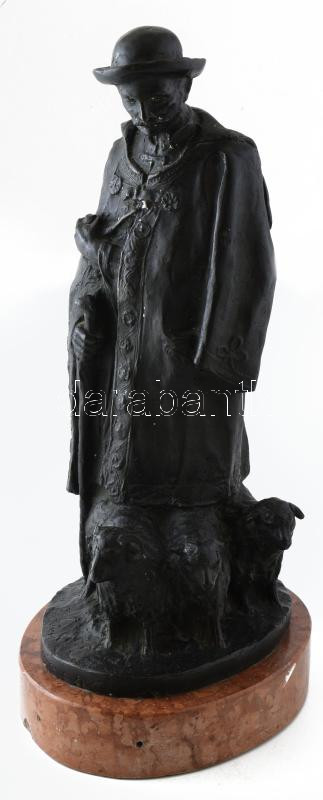 Description: Beszédes János László (1874-1922): Juhász a nyájjal című szobrának utánöntése, Fointho jelzéssel ellátva, sérült márvány talapzaton, m: 58 cm CSAK SZEMÉLYES ÁTVÉTEL/ONLY PERSONAL COLLECTION