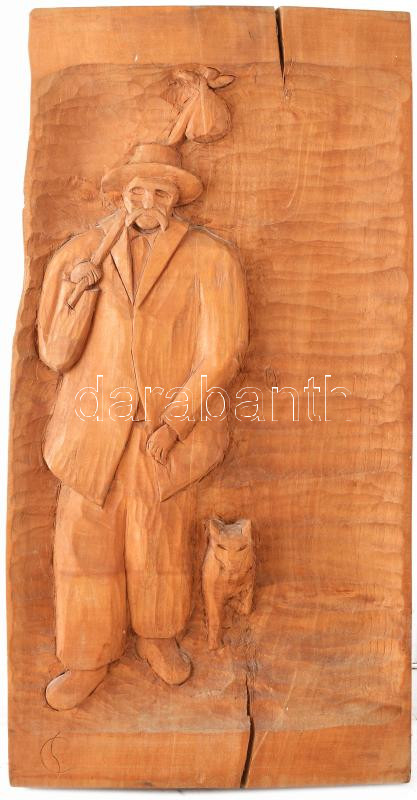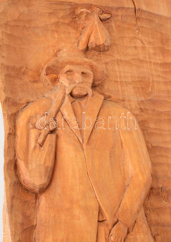 Cseri Antal (1918-2011): Öreg vándor. Faragott fa, jelzett, kopással, 62x32 cm