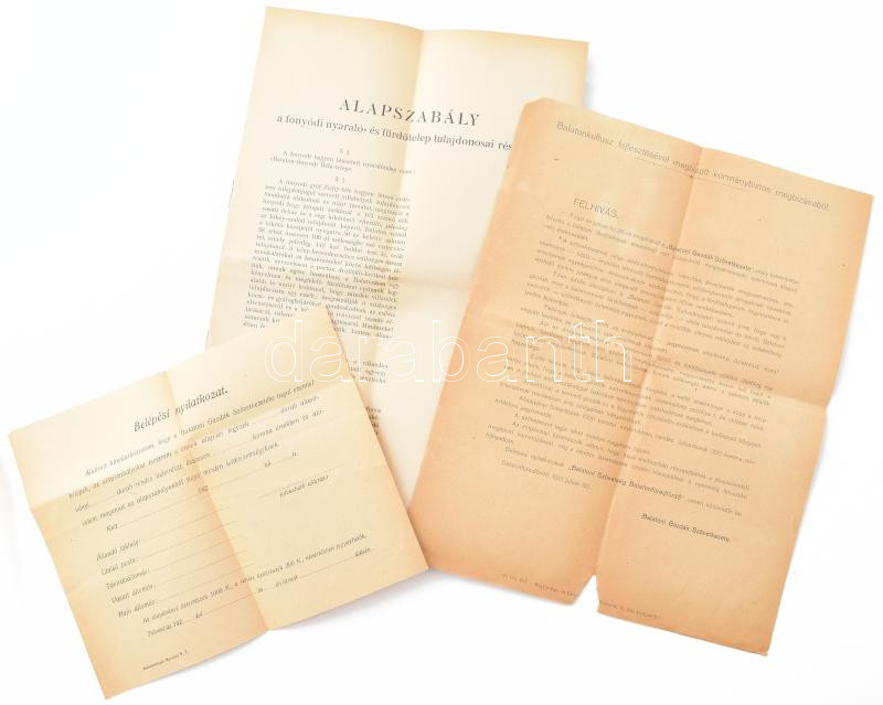 cca 1930 Balaton-Fonyód-Bélatelep alapszabályai Ripka Ferenc elnökletével, belépési nyilatkozat össz 3 db