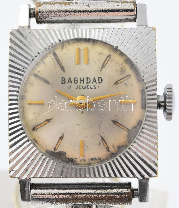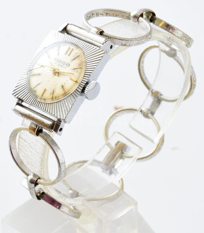 Baghdad iraki női karóra, működik, sérült üveggel, 2,5x2 cm