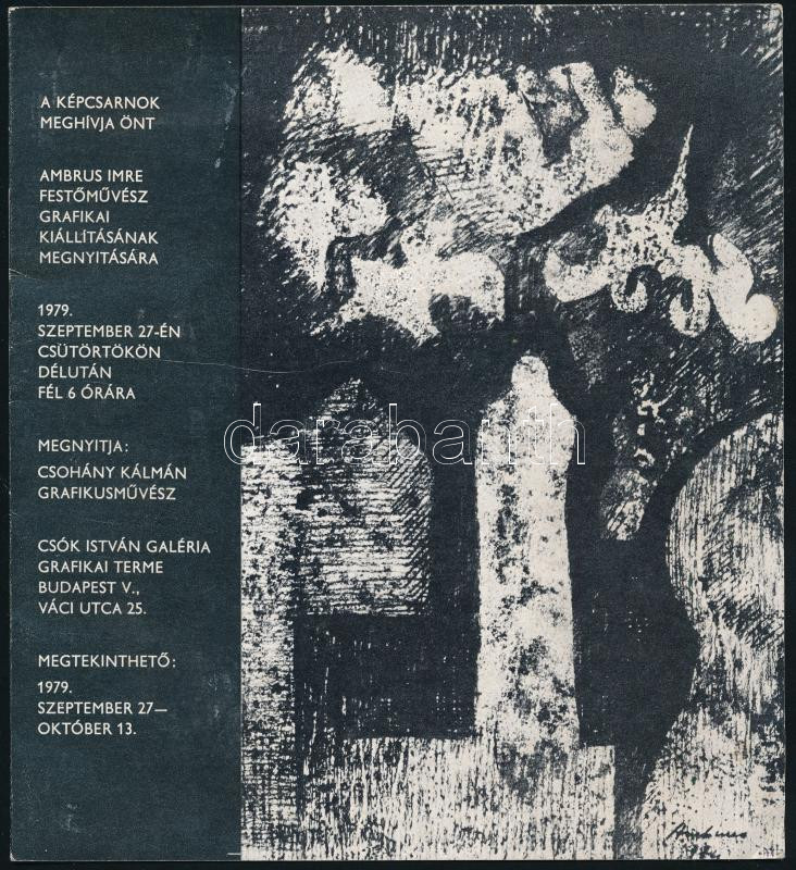 1979 Ambrus Imre festőművész grafikai kiállításának meghívója. A művés...