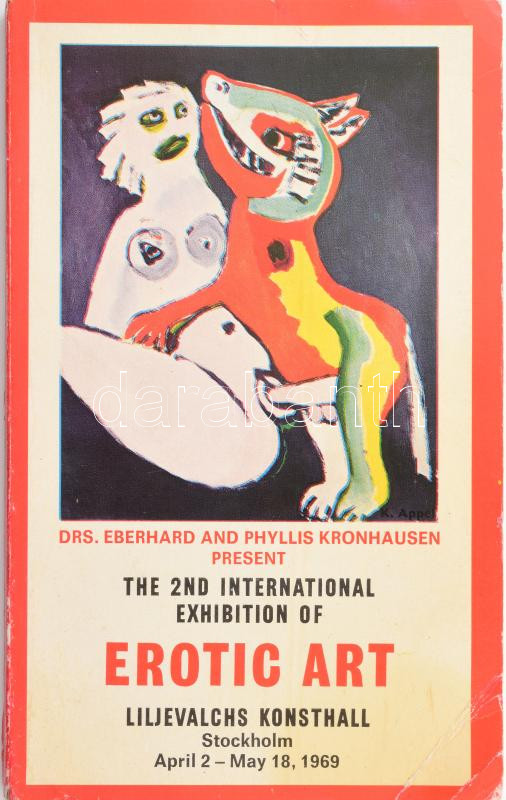 Eberhard and Phyllis Kronhausen: The 2nd International Exhibition of Erotic Art. Liljevalchs Konsthall, Stockholm, April 2 - May 18, 1969. (Erotikus művészeti kiállítás katalógusa). Genf, 1969, Societe d'Etudets Financieres. Gazdag fekete-fehér képanyaggal illusztrálva. Angol, svéd és német nyelvű bevezetővel. Kiadói papírkötés, némileg viseltes borítóval.