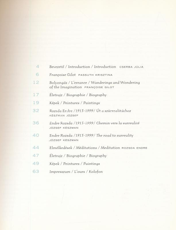Francoise Gilot - Rozsa Endre. KiállÃtási katalógus. Cserba Júlia elÅ‘s...