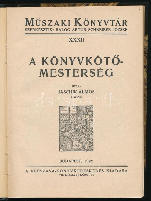 Jaschik Álmos: A könyvkötő-mesterség. Bp.,1922, Népszava,(Világosság-n...