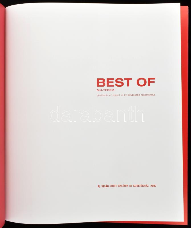 Description: Virág Judit - Törő István: Best of Mű-Terem. Válogatás az elmúlt 10 év kiemelkedő alkotásaiból. (Bp.),2007, Virág Judit Galéria és Aukciósház. Gazdag képanyaggal illusztrált. Kiadói kartonált papírkötés, kiadói papír védőborítóval, jó állapotban.