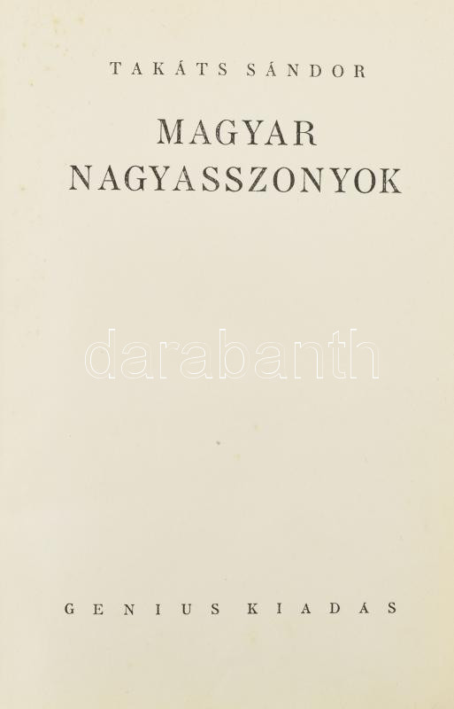 https://www.darabanth.com/en/454-Online-auction/454.0/Books/Books-History~1500018/Takats-Sandor-magyar-nagyasszonyok-Bp-en-Genius-Kiadoi-aranyozott-felbor-kotesben-ara~II3029698