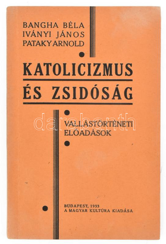 Bangha Béla - Iványi János - Pataky Arnold: Katolicizmus és zsidóság. ... https://www.darabanth.com/en/454-Online-auction/454.0/Books/Books-Judaica~1500029/Bangha-Bela-Ivanyi-Janos-Pataky-Arnold-Katolicizmus-es-zsidosag-Vallastorteneti-eloa~II3013088