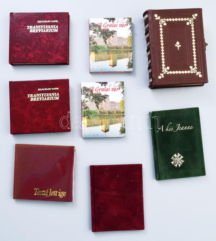 Description: 8 db ritkább minikönyv vegyes témában: Kodex facsimile. Szacsvay Transílvania Breviarium, A gyulai vár Testté lett ige, A kis Jeanne. Mathias Corvinus Initailais