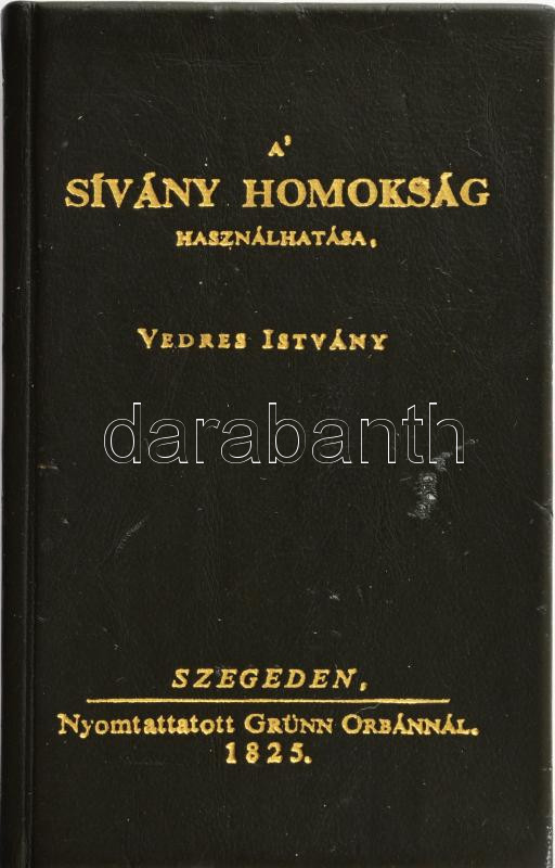 Vedres István: A sívány homokság használhatása. (Minikönyv). Szeged, 1980, MTESZ Csongrád Megyei Szervezete - Szegedi Nyomda. Reprint kiadás. Kiadói műbőr-kötés. Megjelent 750 példányban.