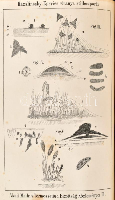 Mathematikai és természettudományi közlemények vonatkozólag a hazai viszonyokra II-III. köt. [Egybekötve.] Szerk.: Szabó József. Kiadja a Magyar Tudományos Akadémia Mathematikai és Természettudományi Állandó Bizottsága. Pest, 1864-1865., (Emich Gusztáv-ny.), XV+240 p. + 3 t; XXVI+2+446 p.+6 (közte 4 színes tábla) t.+2 (táblázatok) t. Átkötött félvászon-kötés, kopott, foltos borítóval, foltos lapokkal, néhány lapon sérüléssel, a II. kötet címlapja hiányzik, a II. részben az egyik tábla sérült, hiányos, és egy térkép hiányzik (csak egy kis darabja van meg), a III. részben egy tábla hiányzik, és egy tábla nagyrészt hiányos, sérült, megviselt állapotban.