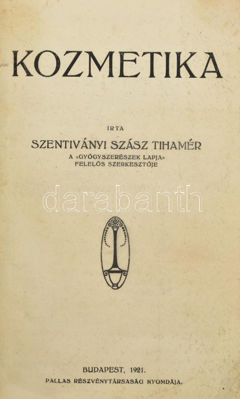 Szentiványi Szász Tihamér: Kozmetika. Bp., 1921, "Pallas", 258 p. Átkötött félvászon-kötés, kissé foltos lapokkal, névbejegyzéssel.