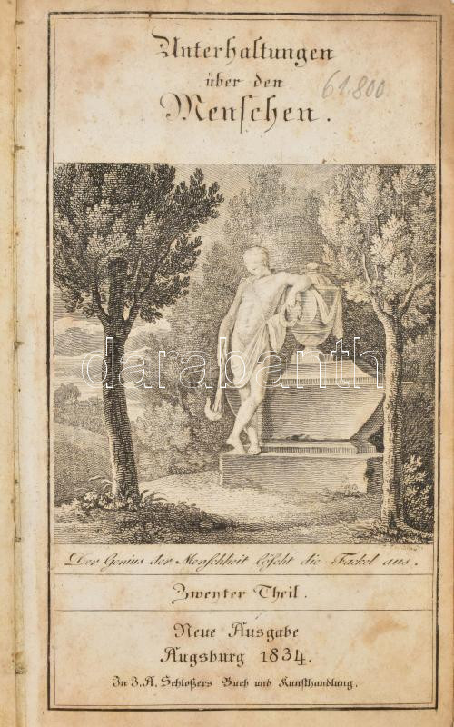 Description: Wilhelm, Gottlieb Tobias. Unterhaltungen über den Menschen. [Von seinem Körper und dessen Theilen und ihren Functionen ins besondere.] II. Theil Agb., J.A. Schloßers Buch und Kunsthandlung, 1834. 1t. rézmetszetű díszcímlap 8 sztl lev. 488 p LIX. színezett rézmetszetű tábla. Korabeli félbőr kötésben, kötéstábla elvált a könyvtesttől.