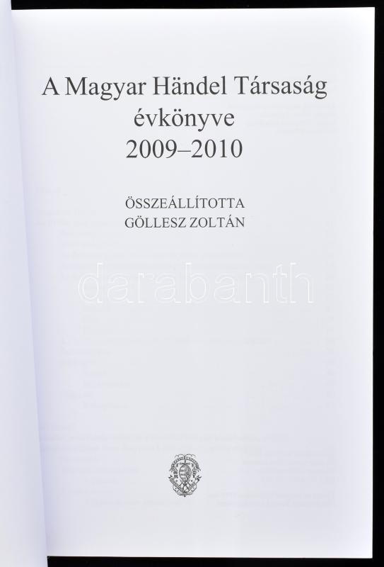 A Magyar Händel Társaság évkönyve 2009-2010. Összeáll.: Göllesz Zoltán. (Bp.), 2010, Rózsavölgyi és Társa. Kiadói papírkötés.