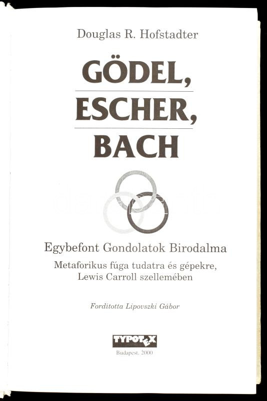 Douglas R. Hofstadter: Gödel, Escher, Bach. Egybefont Gondolatok birodalma. Metaforikus fúga tudatra és gépekre, Lewis Carroll szellemében. Bp., 2000, Typotex. Harmadik változatlan utánnyomás. Kiadói kartonált papírkötés, borítón kopásnyomokkal.
