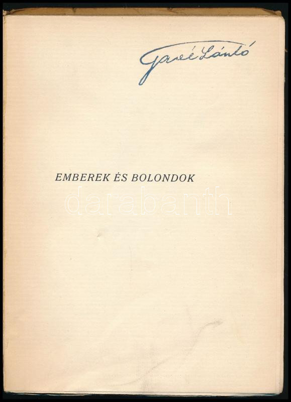 Description: Hans E. Kinck: Emberek és bolondok. Gyoma, 1931., Kner, 150+2 p. Kiadói illusztrált papírkötés, kissé foltos, kissé szakadt borítóval, későbbi, 1936-os Kneres ajándékozási címkével.