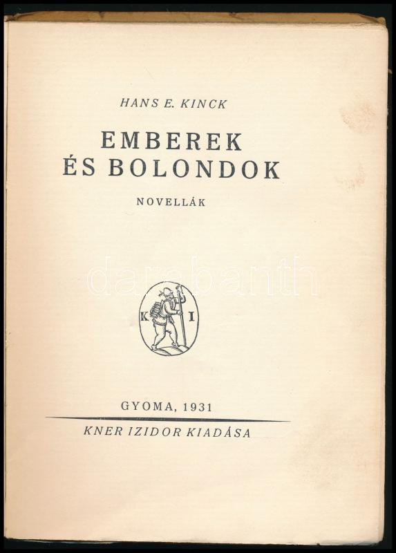 Hans E. Kinck: Emberek és bolondok. Gyoma, 1931., Kner, 150+2 p. Kiadó... https://www.darabanth.com/en/454-Online-auction/454.0/Books/Books-Other-rarities~1500035/Hans-E-Kinck-Emberek-es-bolondok-Gyoma-1931-Kner-150plus2-p-Kiadoi-illusztralt-papirkotes~II3030769