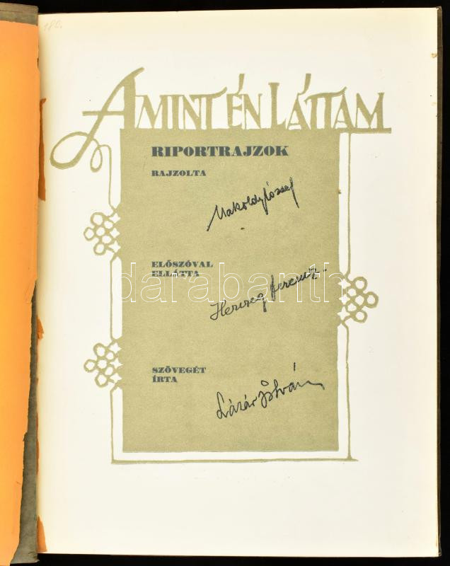 Makoldy József Amint én láttam. Riportrajzok. Előszóval ellát. Herczeg... https://www.darabanth.com/en/454-Online-auction/454.0/Books/Books-Other-rarities~1500035/Makoldy-Jozsef-Amint-en-lattam-Riportrajzok-Eloszoval-ellat-Herczeg-Ferencz-Szoveget-ir~II2989797