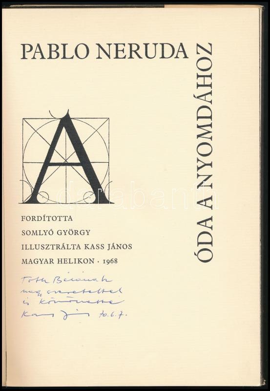 Neruda Pablo: Óda a Nyomdához. Fordította Somlyó György. (Kass János r... https://www.darabanth.com/en/454-Online-auction/454.0/Books/Books-Other-rarities~1500035/Neruda-Pablo-Oda-a-Nyomdahoz-Forditotta-Somlyo-Gyorgy-Kass-Janos-rajzaival--Bp-1968~II3029874