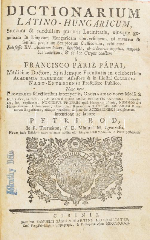 https://www.darabanth.com/en/454-Online-auction/454.0/Books/Books-Other-rarities~1500035/Papai-Pariz-Ferenc-Bod-Peter-Franciscus-Pariz-Papai-Petri-Bod-Dictionarium-Latino-Hungari~II3029861