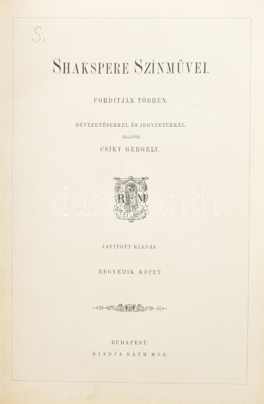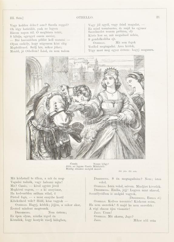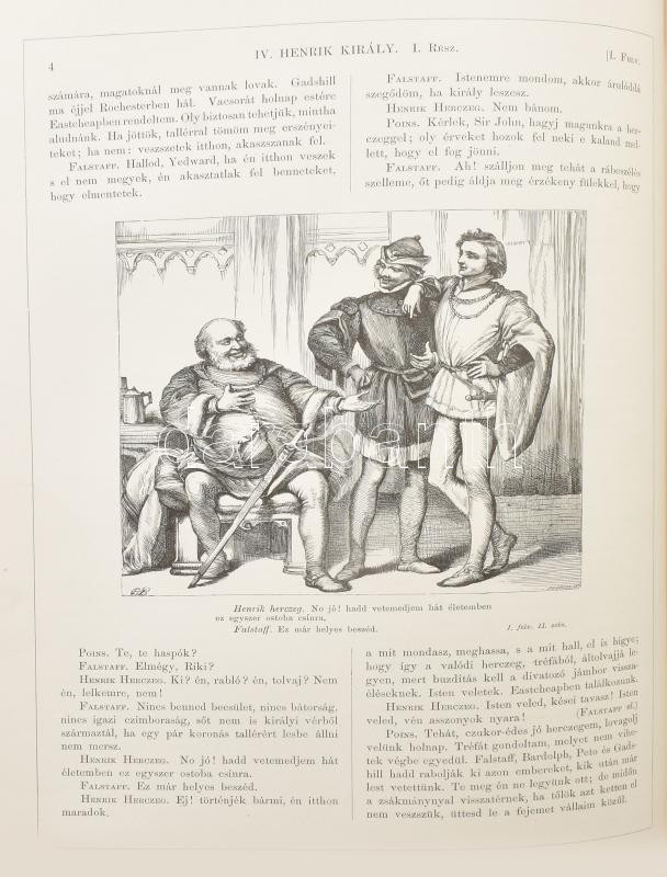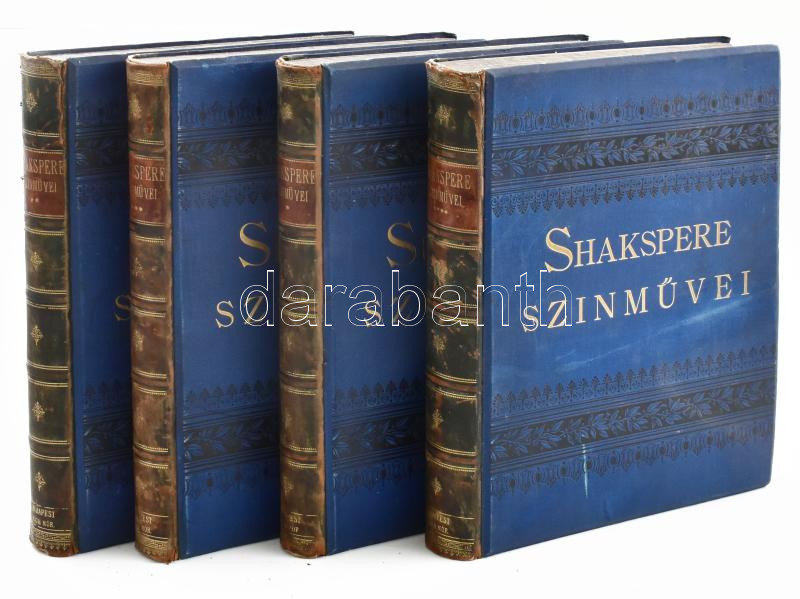 Shakspere [Shakespeare] színművei I.-IV. kötet. Fordították többen. Javított kiadása. Közel 600 illustrrátióval. Bp.,[1886-1891]. Ráth Mór, Franklin-Társulat.Kiadói aranyozott félbőr kötésben Kisebb kopásokkal a borítón, a 2. kötet gerince sérült