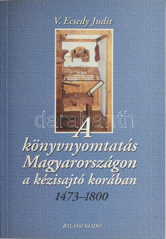 V. Ecsedy Judit: A könyvnyomtatás Magyarországon a kézisajtó korában. ... https://www.darabanth.com/en/454-Online-auction/454.0/Books/Books-Other-rarities~1500035/V-Ecsedy-Judit-A-konyvnyomtatas-Magyarorszagon-a-kezisajto-koraban-1473-1800-Bp-1999-Ba~II2994281