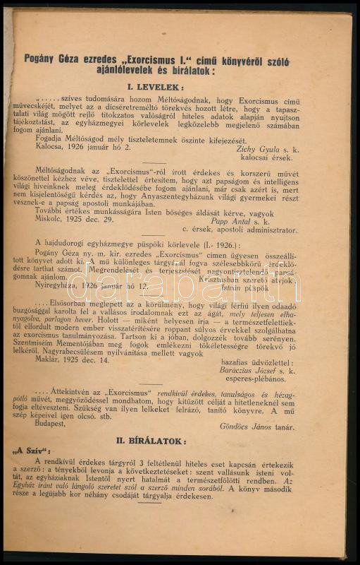 Sutter Pál: Exorcismus II. (Ördögüzés.) A sátán hatalma és működése két megszállott gyermekben. Ford.: Pogány Géza. Bp., 1939., Bagó Mihály, 83+1 p. Kiadói papÃrkötés, foltos borÃtóval, a gerincen kis hiánnyal.