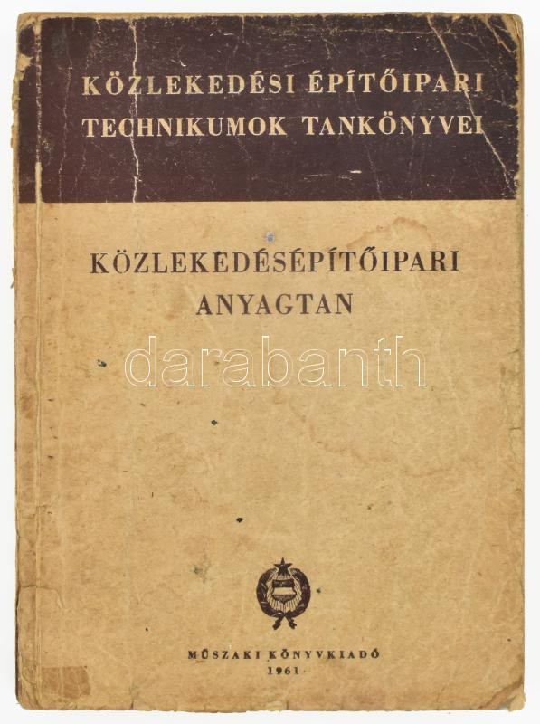 Kovács György: Közlekedésépítőipari anyagtan. Bp., [1961], Műszaki Kön... https://www.darabanth.com/en/454-Online-auction/454.0/Books/Books-Technics~1500027/Kovacs-Gyorgy-Kozlekedesepitoipari-anyagtan-Bp-1961-Muszaki-Konyvkiado-375-p-Mas~II3024518