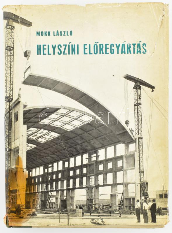 Mokk László: Helyszíni előregyártás. Bp., Műszaki, 1961. Foltos kiadói félvászon kötés, sérült és foltos kiadói papír védőborítóban.