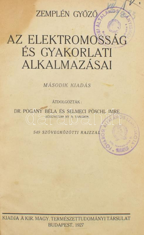 Zemplén Győző: Az elektromosság és gyakorlati alkalmazásai. Átdolgoztá... https://www.darabanth.com/en/454-Online-auction/454.0/Books/Books-Technics~1500027/Zemplen-Gyozo-Az-elektromossag-es-gyakorlati-alkalmazasai-Atdolgoztak-Pogany-Bela-es-P~II3024645