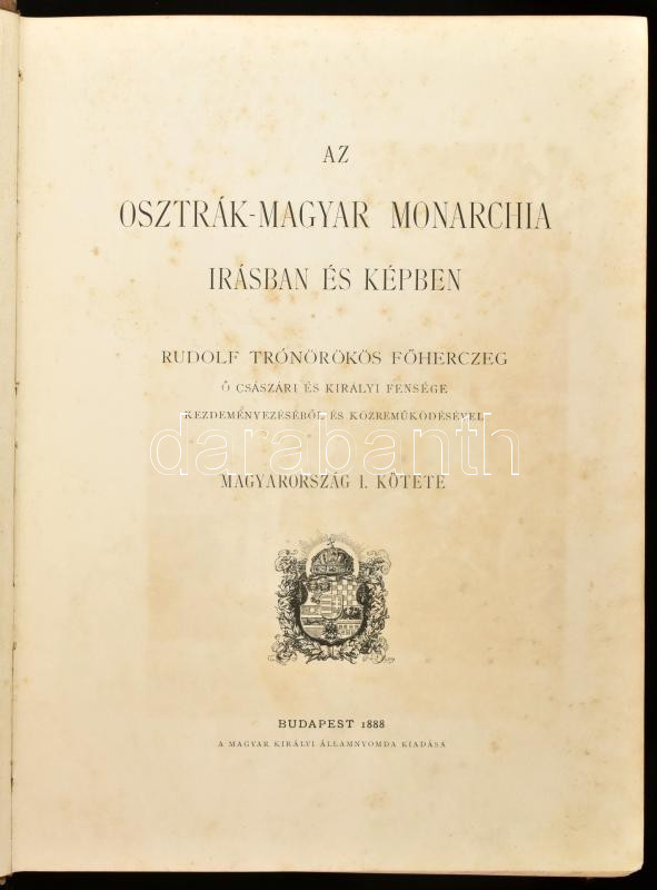 - Az Osztrák-Magyar Monarchia írásban és képben. III. kötet Magyarország I. kötete. Bp., 1888, Magyar Királyi Államnyomda, XVI+526 p.+1 (Ormánsági magyar népviselet, hártyapapírral védett kromocinkográfia (hártyapapír sérült) t. Nagyon gazdag egészoldalas és szövegközti képanyaggal illusztrált. Kiadói dúsan aranyozott, festett egészvászon-kötés, Gottermayer-kötés, kopott, minimális kopás a borítón, intézményi bélyegző, enyhén foltos első lapok