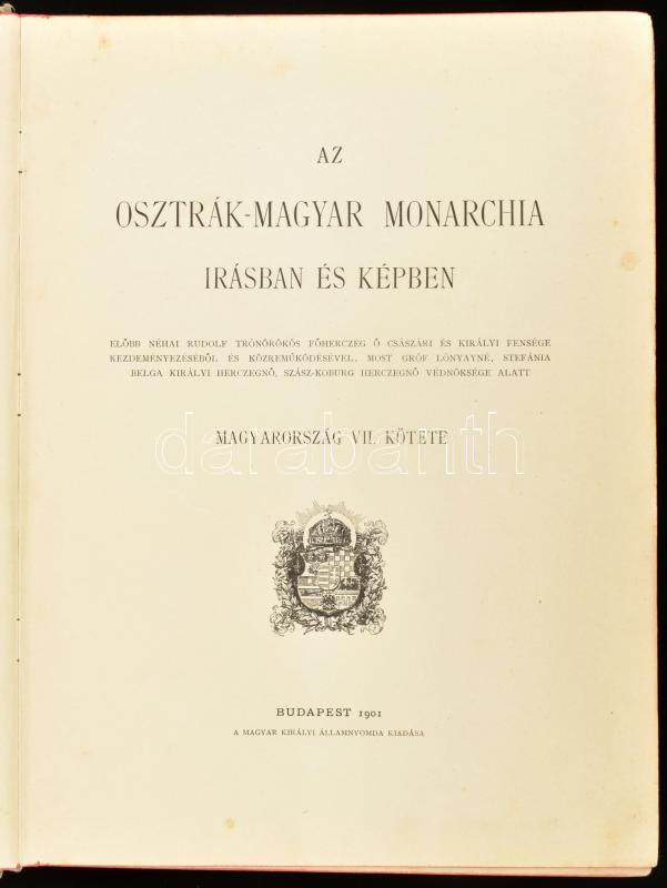 Az Osztrák-Magyar Monarchia írásban és képben. XX. kötet. Magyarország VII. köt. Délkeleti Magyarország. Erdély és a szomszédos hegyvidékek. Bp., 1901., Magyar Királyi Államnyomda,XIV+604 pNagyon gazdag egészoldalas és szövegközti képanyaggal illusztrált. Kiadói dúsan aranyozott, festett egészvászon-kötés, Gottermayer-kötés, kevés kopás a borítón, laza kötés, belső borítón kis sérülés