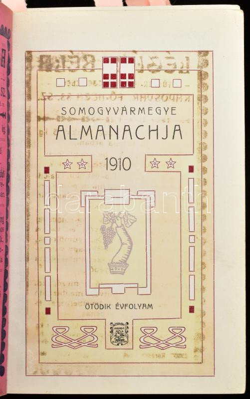 https://www.darabanth.com/en/454-Online-auction/454.0/Books/Books-Travelling-Local-History~1500014/Somogyvarmegye-Almanachja-1910-Otodik-evfolyam-Kaposvar-1910-Reszvenynyomda-4plus238plusXXXVI~II3029937