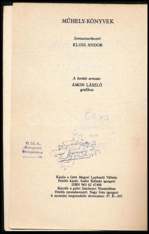 Szabó Jenő: Öt évszázad fekete krónikája. (Soproni Pitaval). Műhely-Könyvek sorozat. (Győr, 1987), Győr megyei Lapkiadó Vállalat. Első kiadás. Kiadói papírkötés, kissé foltos borítóval, volt könyvtári példány.