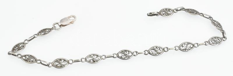 Ezüst (Ag) ovális szemű filigrán karkötő, jelzett, h: 19,5 cm, nettó. ...