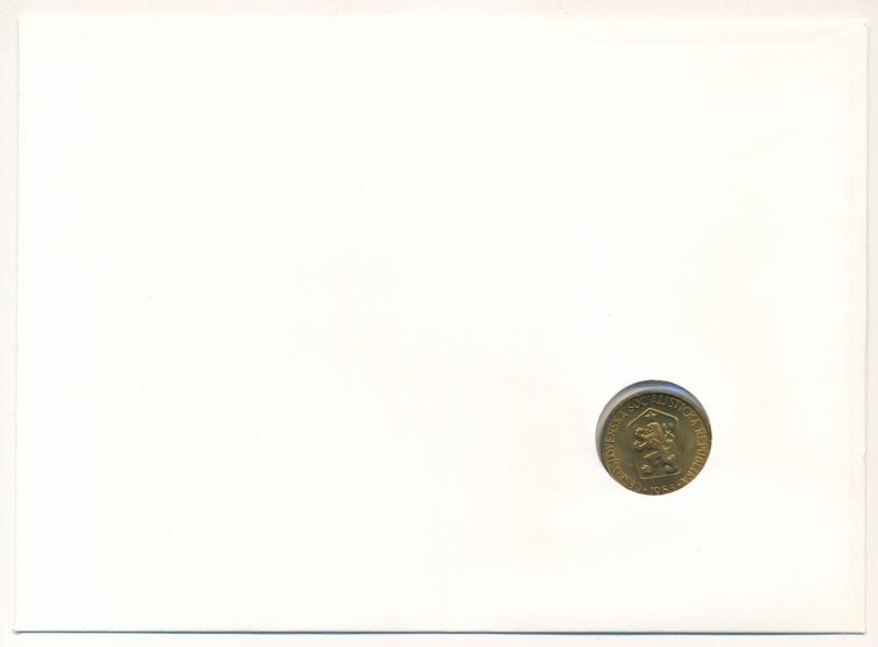Csehszlovákia 1985. 1K Al-bronz felbélyegzett borítékban, bélyegzéssel... https://www.darabanth.com/en/454-Online-auction/454.0/Numismatics/Envelopes-with-Coins-and-Banknotes~2000004/Csehszlovakia-1985-1K-Al-bronz-felbelyegzett-boritekban-belyegzessel-nemet-nyelvu-leira~II3013943