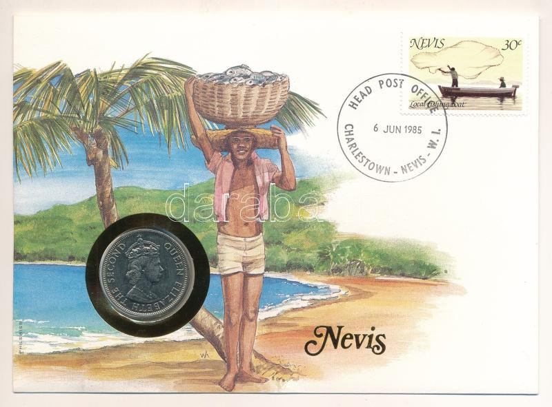 Kelet-Karibi Államok / Nevis 1965. 50c Cu-Ni "II. Erzsébet" ... https://www.darabanth.com/en/454-Online-auction/454.0/Numismatics/Envelopes-with-Coins-and-Banknotes~2000004/Kelet-Karibi-Allamok-Nevis-1965-50c-Cu-Ni-II-Erzsebet-felbelyegzett-boritekban-belyegzC3~II3013937