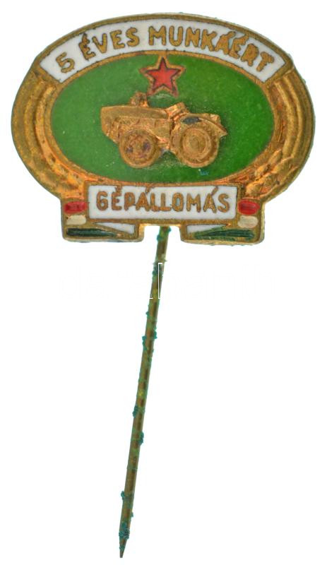 ~1960-1970. "Gépállomás - 5 éves munkáért" zománcozott bronz jelvény (18x23) T:AU
