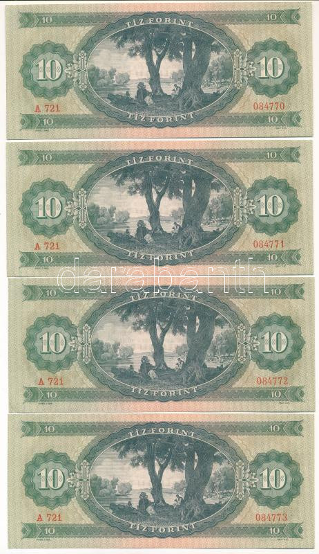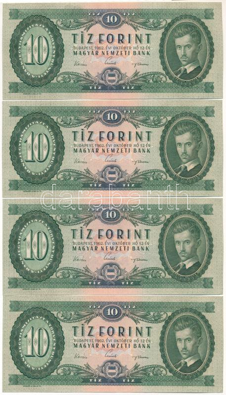1962. 10Ft (4x) sorszámkövetők "A 721 084770 - A 721 084773"...