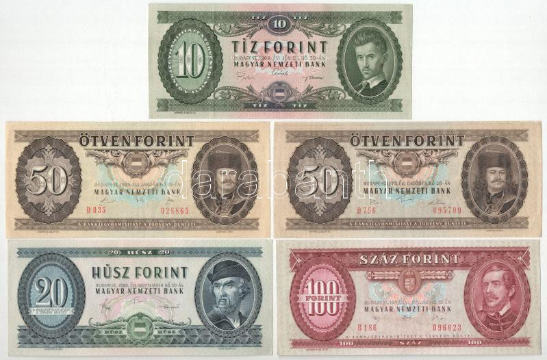 https://www.darabanth.com/en/454-Online-auction/454.0/Numismatics/Hungarian-Banknotes~2000007/1969-10Ft-plus-1975-50Ft-plus-1980-20Ft-plus-1989-50Ft-plus-1992-100Ft-nyomdai-papirrancok-TXF-F-szep~II3023575