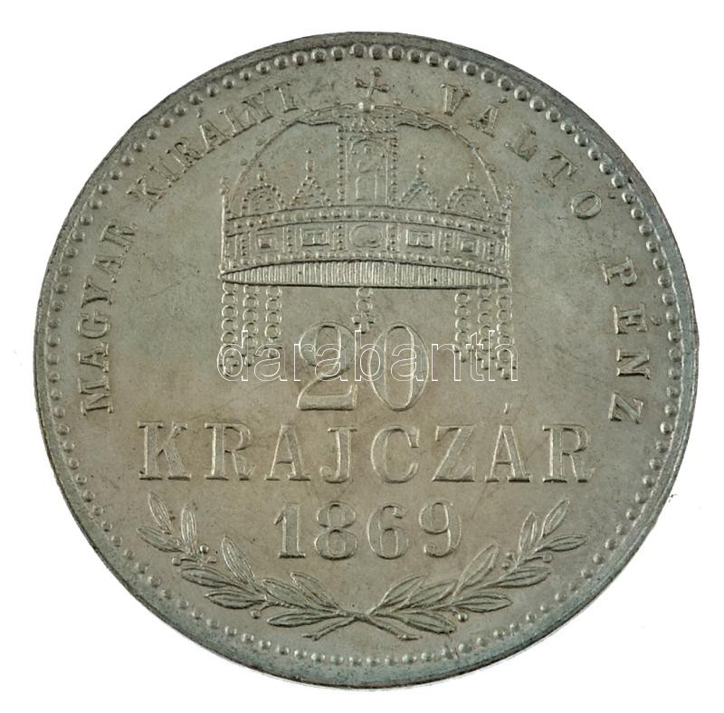 https://www.darabanth.com/en/454-Online-auction/454.0/Numismatics/Hungarian-coins-and-coins-with-Hungarian-mint-marks~2000008/1869KB-20kr-Ag-Valto-Penz-TAU-XF-kis-patina-Adamo-M111~II3025100