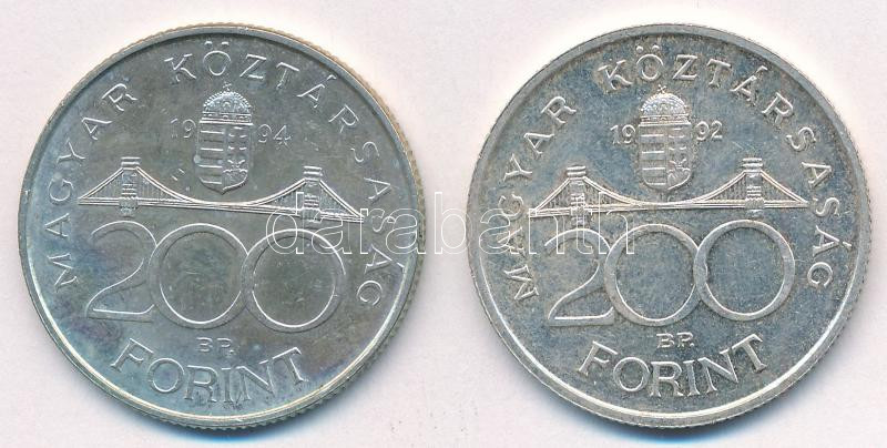 1992. 200Ft Ag "MNB" + 1994. 200Ft Ag "Deák" T:AU,...