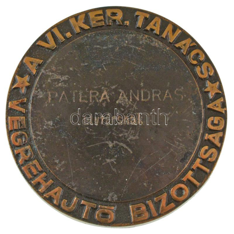 1975. "25 éves a Tanács 1950-1975 / A VI. Ker. Tanács Végrehajtó Bizottsága" bronz emlékérem gravírozva (77mm) T:XF karc