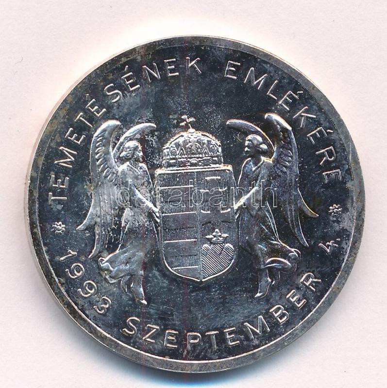1993. "Vitéz Nagybányai Horthy Miklós Magyarország kormányzója / Temetésének emlékére 1993. szeptember 4." ezüstözött fém emlékérem (40mm) T:UNC,AU patina