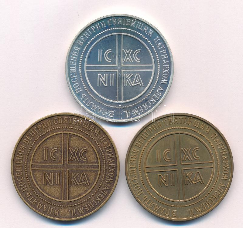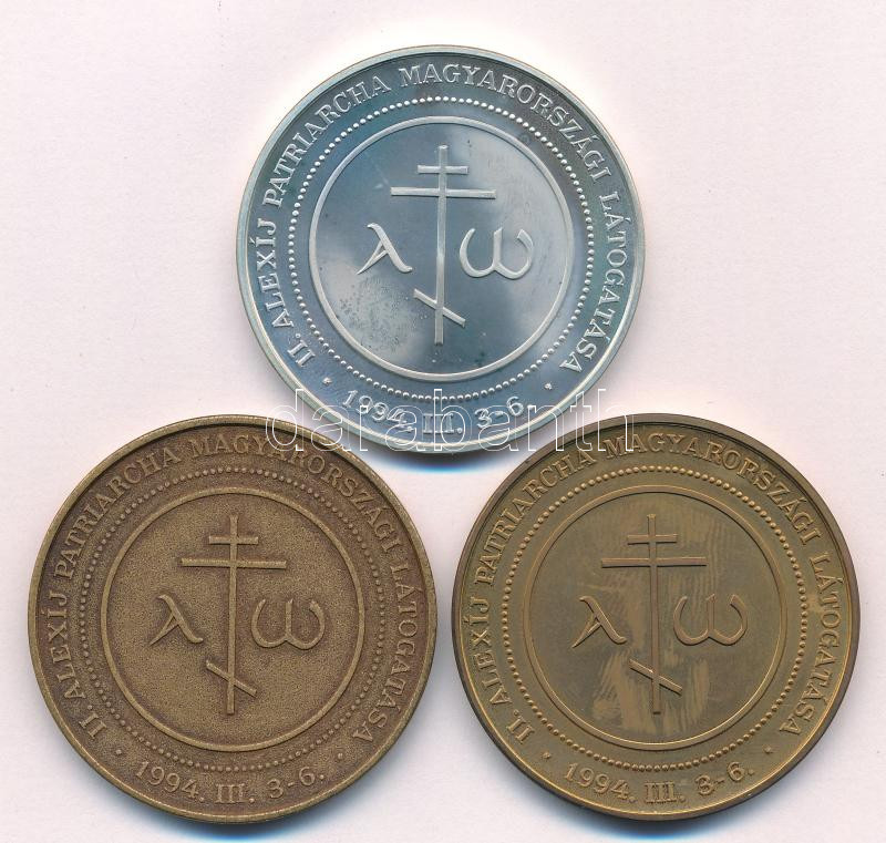 Description: 1994. "II.Alexij patriarcha magyarországi látogatása" peremén jelzett Ag, aranyozott és bronz emlékérem sor (3xklf) (31,06g/0.925/42,5mm) T:UNC,AU (eredetileg PP)